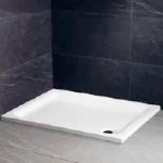 Charola para regadera de 120×90 cms. Fabricada en acrílico termo formado recubierto de fibra de vidrio, incluye desagüe y cespol de bote.
