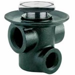 Coladera decorativa de tres bocas, tapa redonda lisa, contra cuadrada, desagüe de contorno, sello hidráulico, modelo 25-CHL, marca Helvex.