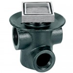 Coladera de tres bocas, contra cuadrada, alojamiento para inserto cerámico, desagüe de contorno, sello hidráulico, espesor máximo para inserto 10 mm, modelo 25-CHLI, marca Helvex.