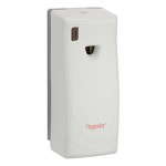 Dispensador de aromatizante de aerosol, fabricado en ABS en color blanco, ajusta intervalos de 7, 15 ó 30 minutos, funciona con dos baterías tipo “D” (no incluidas). Modelo 70.041, marca Hygolet.