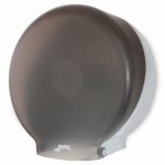 Dispensador de papel higiénico con cerradura de seguridad, fabricado en plástico ABS resistente color blanco o transparente humo capacidad 1 rollo de 9, dimensiones: 27 x 28 x 12 cm. Modelo PH51002, marca Jofel.
