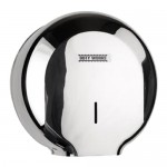 Dispensador de papel higiénico Junior, ( Acero Inoxidable / Cromado ) Fabricado en acero inoxidable y acabado en cromo, este dispensador por los materiales de su construcción es fuerte y resistente a los golpes, el agua y el fuego, es antivandalismo y difícil de destruir, ideal para lugares públicos, húmedos y de uso rudo, capacidad para 1 rollo de 9″, modelo DW-25-C, marca DutyWorks.