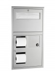 Dispensador Empotrado de Funda para Asiento, Basurero de Toallas Sanitarias y Dispensador de Papel Higiénico.