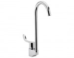 Llave unitaria con cuello de ganso giratorio y manija corta, terminado en cromo, modelo VCG-2, marca Helvex.