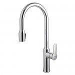 Monomando para fregadero, fabricado en laton cromado, cartucho cerámico europeo, aireador europeo anticalcáreo con restrictor de flujo de 8.3 LPM y extension extraible de 1 m. terminado cromo, modelo TB 11.081, marca Tecnobath.