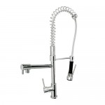 Monomando para fregadero, fabricado en laton cromado, cartucho cerámico europeo, aireador europeo anticalcáreo con restrictor de flujo de 8.3 LPM, terminado en cromo, modelo TB 23.391, marca Tecnobath.
